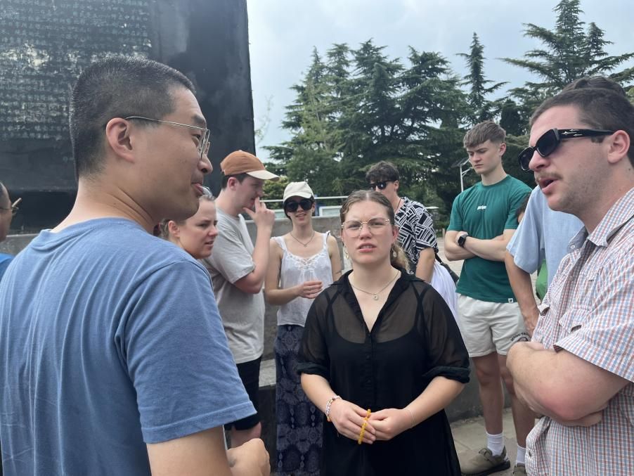 随后,刘琦老师带领同学们进行了一次特别的校史与校园建设讲解。刘老师详尽介绍了永利集团官网龙子湖校区的建校历史和校园发展的各个阶段。从学校的创办初期到如今的现代化校园,每一个阶段都充满了精彩的故事和重要的里程碑。通过刘老师的讲解,同学们不仅了解了学校的发展历程,还深刻感受到yl23411永利集团官网的文化底蕴和精神传承。