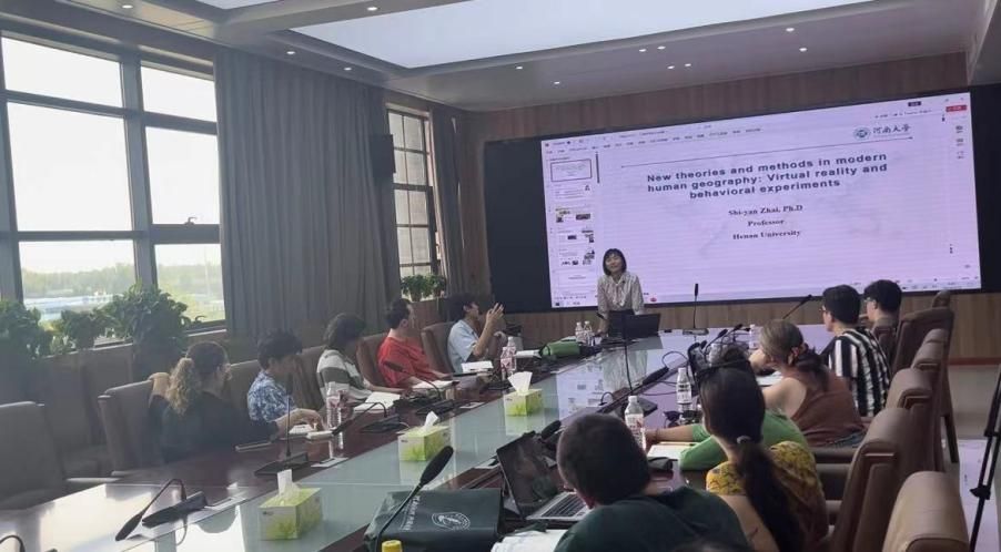 7月22日上午,yl23411永利集团官网教授,博士生导师,“中原英才计划”中原科技创新青年拔尖人才,河南省优青,河南省本科高校青年骨干教师翟石艳教授在yl23411永利集团官网龙子湖校区河南省时空大数据产业技术研究院为同学们带来了一场关于现代人文地理学的精彩学术讲座。翟教授深入浅出地讲解了虚拟现实技术在地理研究中的实际应用,以及行为实验在解析人类空间行为方面的重要性。通过生动的案例分析和实际应用示例,同学们对虚拟现实和行为实验在地理学研究中的潜力有了深入了解。同学们对讲座内容表现出了极大的兴趣,纷纷积极提问。翟教授耐心解答了每一个问题,与同学们进行了深入交流,现场气氛十分热烈。