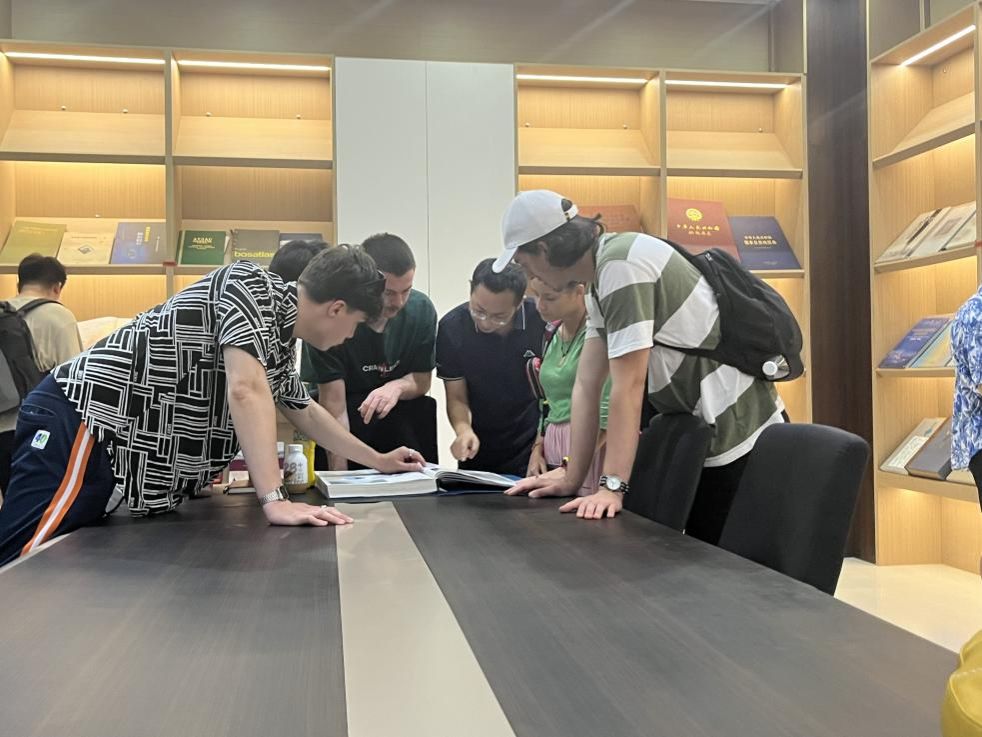紧接着,加泰罗尼亚理工大学博士、河南省时空大数据产业技术研究院刘琦老师带领同学们参观了研究院的地图室。地图室里陈列着各种精美的地图和地理相关的资料,内容丰富多样。学生们对地图室的藏品表现出了浓厚的兴趣,被其丰富的地理信息和精美的制图工艺深深吸引。通过刘老师的讲解,同学们了解了地图制作的历史和技术,体会到了地理学科的独特魅力。