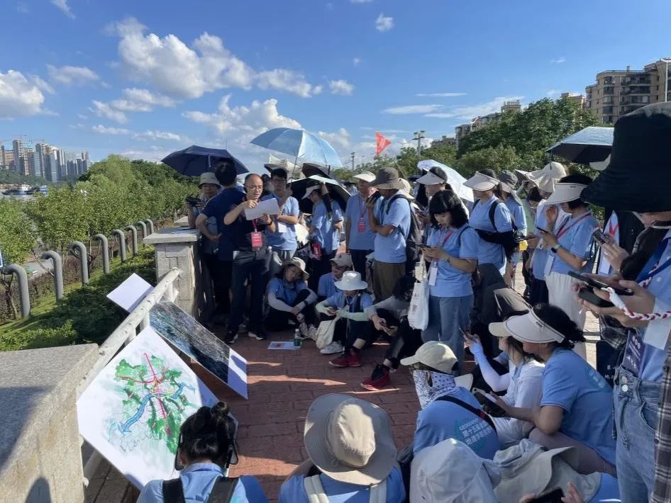 随后,实习队伍来到了湘江西畔。老师重点从自然山水联系的角度引发同学们对长沙山水洲城的空间格局、演化过程及其形成机制的思考。实习队伍沿河堤北行,途中开展了关于城市滨水区规划建设的讨论。老师鼓励同学们结合所学,为城市高质量发展贡献智慧。