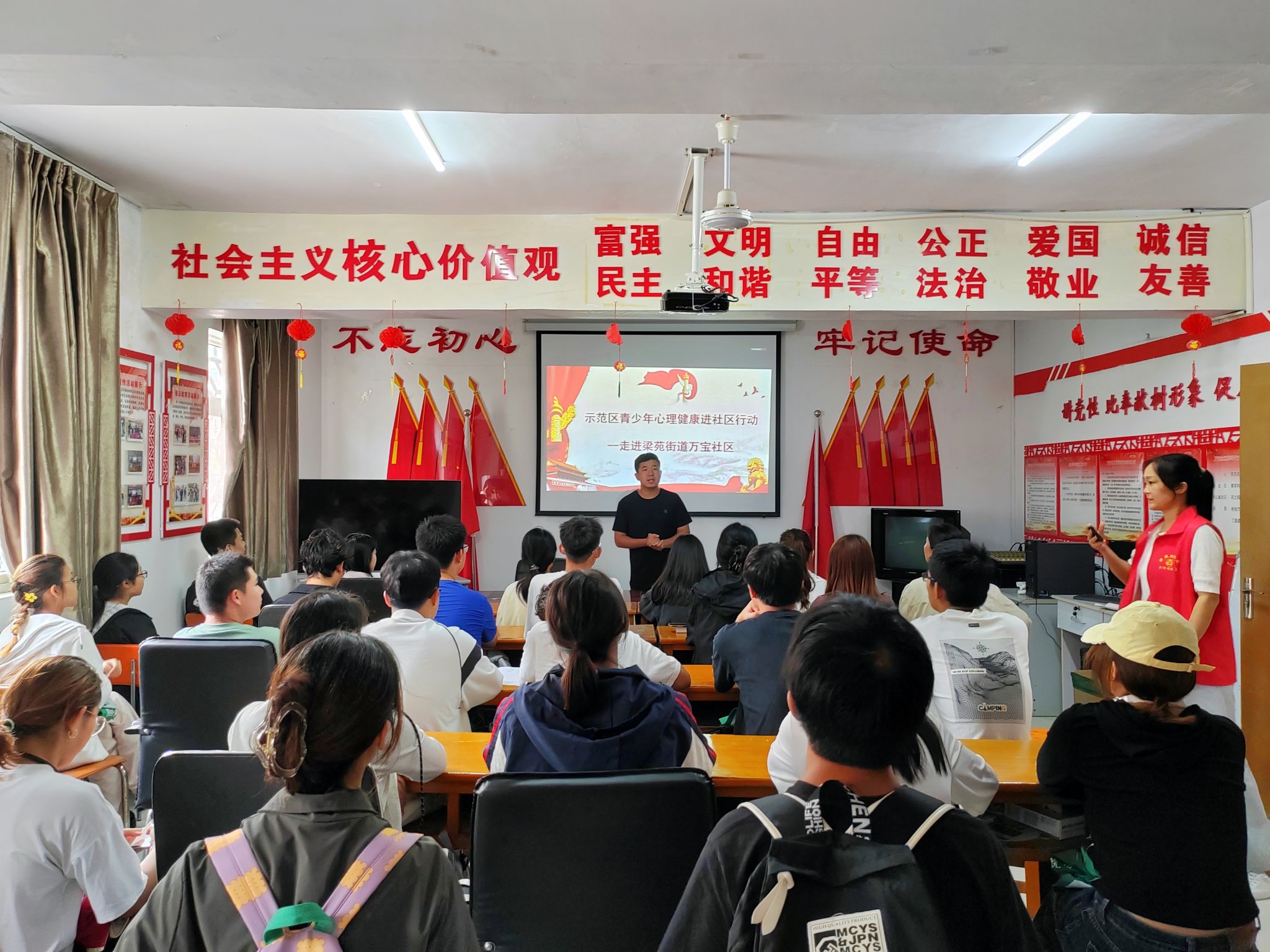 为积极塑造我院学生健康的心理框架,帮助他们有效应对学业与生活中的压力及挑战,进一步促进我院与社会的良性互动与友好交流,9月19日下午,我院携手梁苑街道万宝社区开展示范区青少年心理健康进社区活动。我院2023级本科生志愿者积极参加。