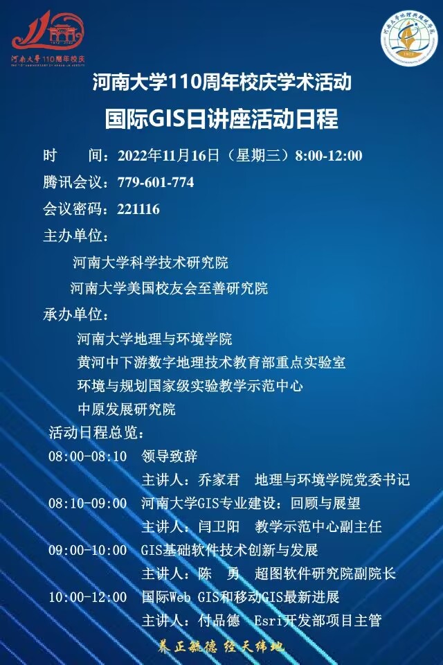 yl23411永利集团官网110周年校庆学术活动:国际GIS日讲座活动日程