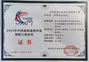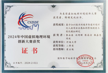 我部计算地理学实验室翟石艳教授带领课题组博士和硕士研究生积极参与,与同行专家和学者开展深入的交流和讨论,并汇报了团队的最新研究工作。博士研究生刘欢与翟石艳教授共同撰写的论文《考虑地图因素的景区旅游线路设计——基于虚拟行为实验》荣获优秀青年论文奖。李柯颉等硕士研究生提交的参赛作品《基于虚拟实验与GeoAI技术的行人过马路谨慎行为的测度与影响机制研究》以及张永豪等研究生提交的参赛作品《基于GeoAI技术的城市街道环境对行人夜间安全感知的影响测度与优化模拟研究》双双斩获2025年中国虚拟地理环境创新大赛二等奖。