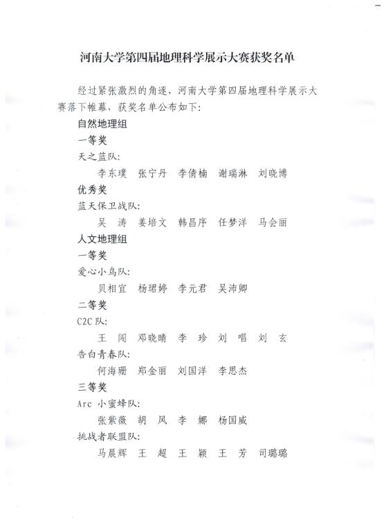 【公  示】yl23411永利集团官网第四届地理科学展示大赛获奖名单