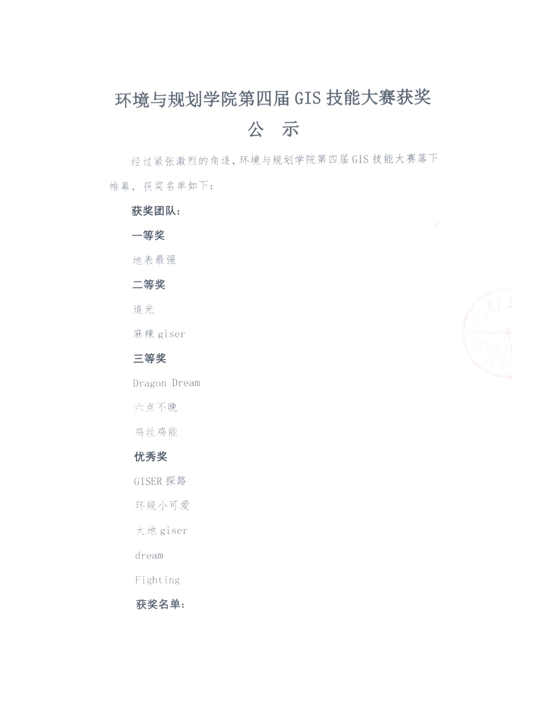 【公  示】环境与规划学院第四届GIS技能大赛获奖公示