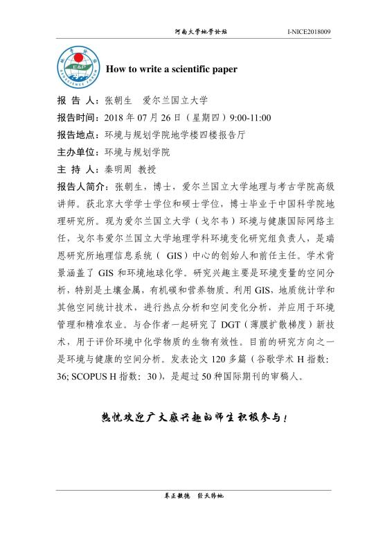 【地学论坛】张朝生:How to write a scientific paper (时间:7.26,9:00-11:00)