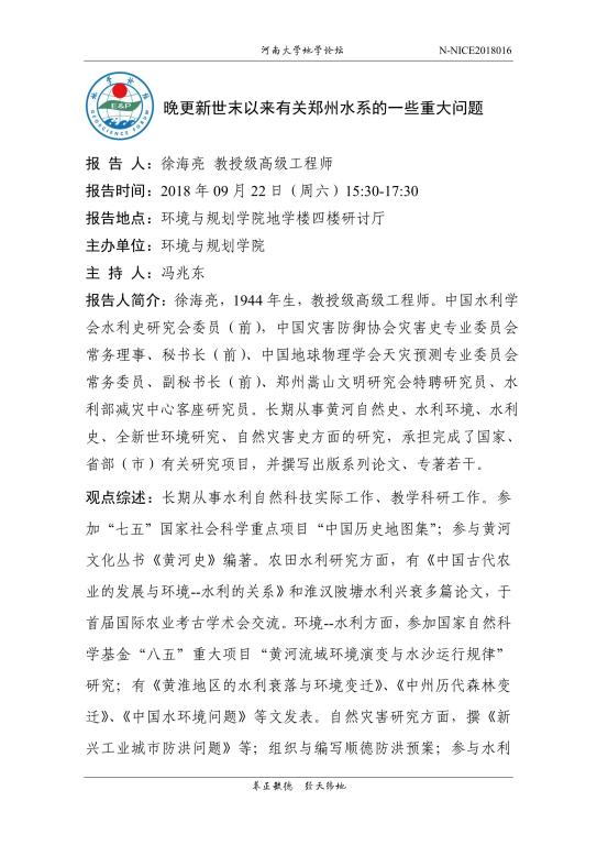 【地学论坛】徐海亮:晚更新世末以来郑州水系的一些重大问题(时间:9.22(周六),15:30-17:30)