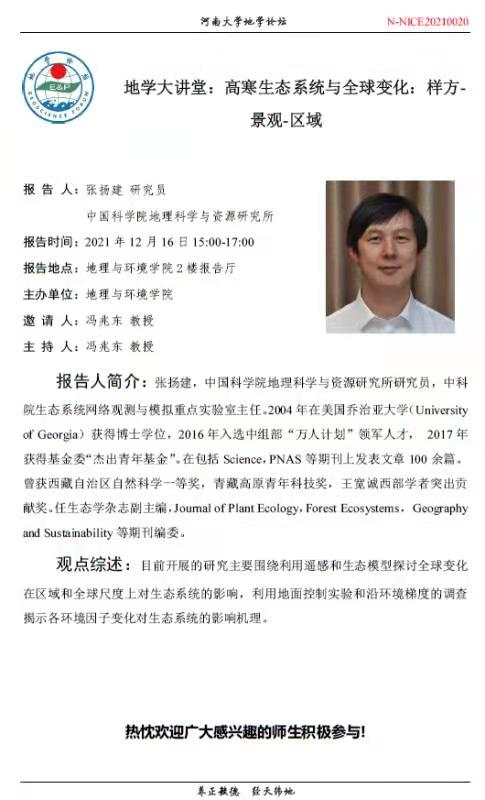 【地学论坛】地学大讲堂:高寒生态系统与全球变化:样方-景观-区域