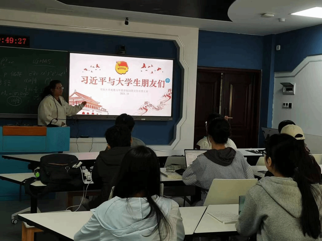 为深入学习习近平总书记对新时代大学生的谆谆教诲和殷切嘱托,引导团支部成员从实践中争做有理想、敢担当、能吃苦、肯奋斗的新时代好青年。10月16日,我院2022级地理科学(明德计划)团支部在环境与规划国家级实验教学示范中心115教室开展以“习近平与大学生朋友们”为主题团日活动。此次活动由团支部书记周菁菁主持,支部全体成员参加。