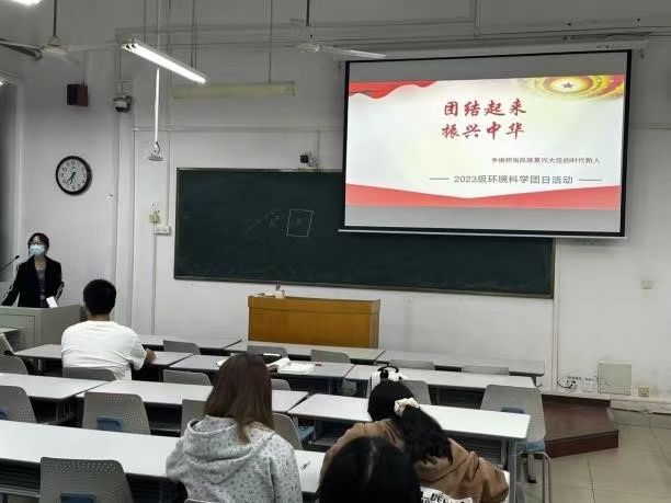 为培养广大青年的爱国情感,厚植家国情怀,助力培养新时代社会主义接班人,10月10日,我院2023级环境科学班团支部在金明校区综合教学楼3107教室召开以“团结起来,振华中华”为主题的团日活动。此次会议由团支部书记郭书凝主持,2023级环境科学班全体学生参加。