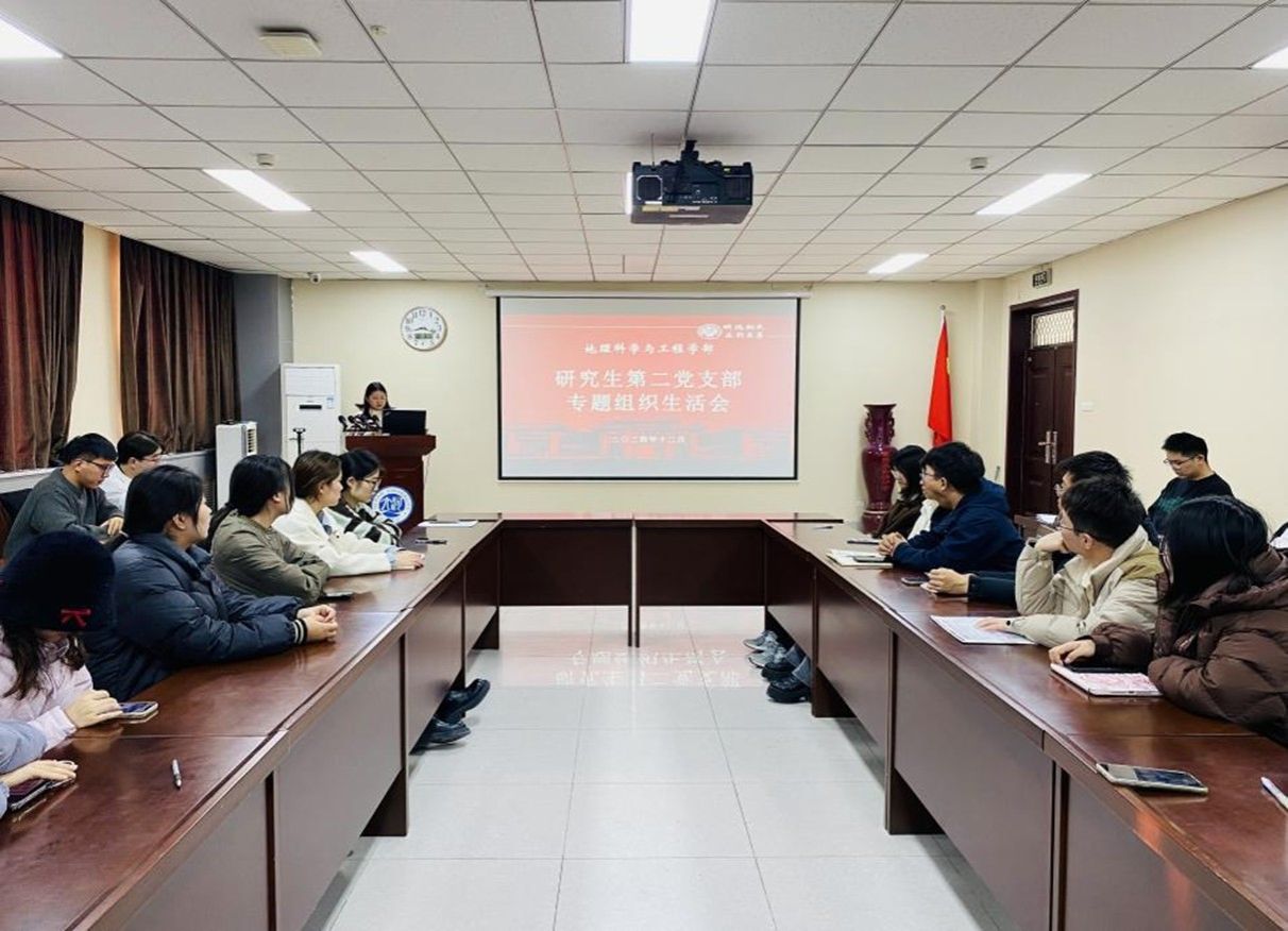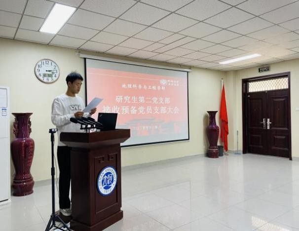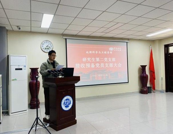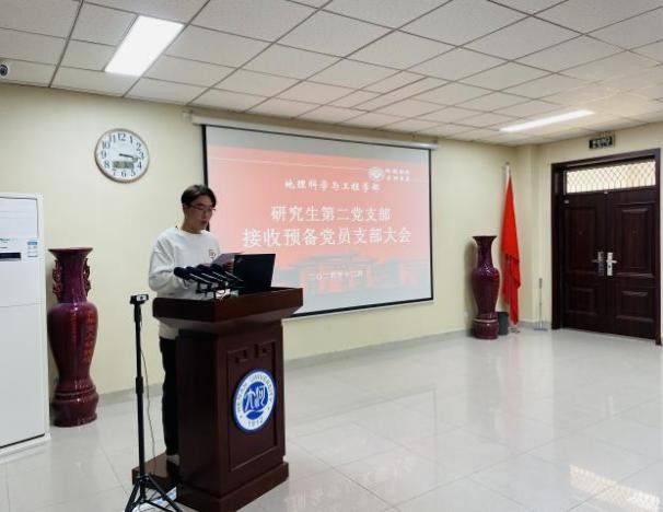 为深入学习贯彻党的二十届三中全会精神,认真学习《yl23411永利集团官网以高质量党建引领一流大学建设的实施意见》(以下简称《实施意见》),引领、培育优秀的党组织后备力量,12月3日下午,我院研究生第二党支部于地学楼二楼学术报告厅召开专题组织生活会暨接收预备党员支部大会。会议由支部书记陆蓉主持,支部党员与发展对象参加此次会议。