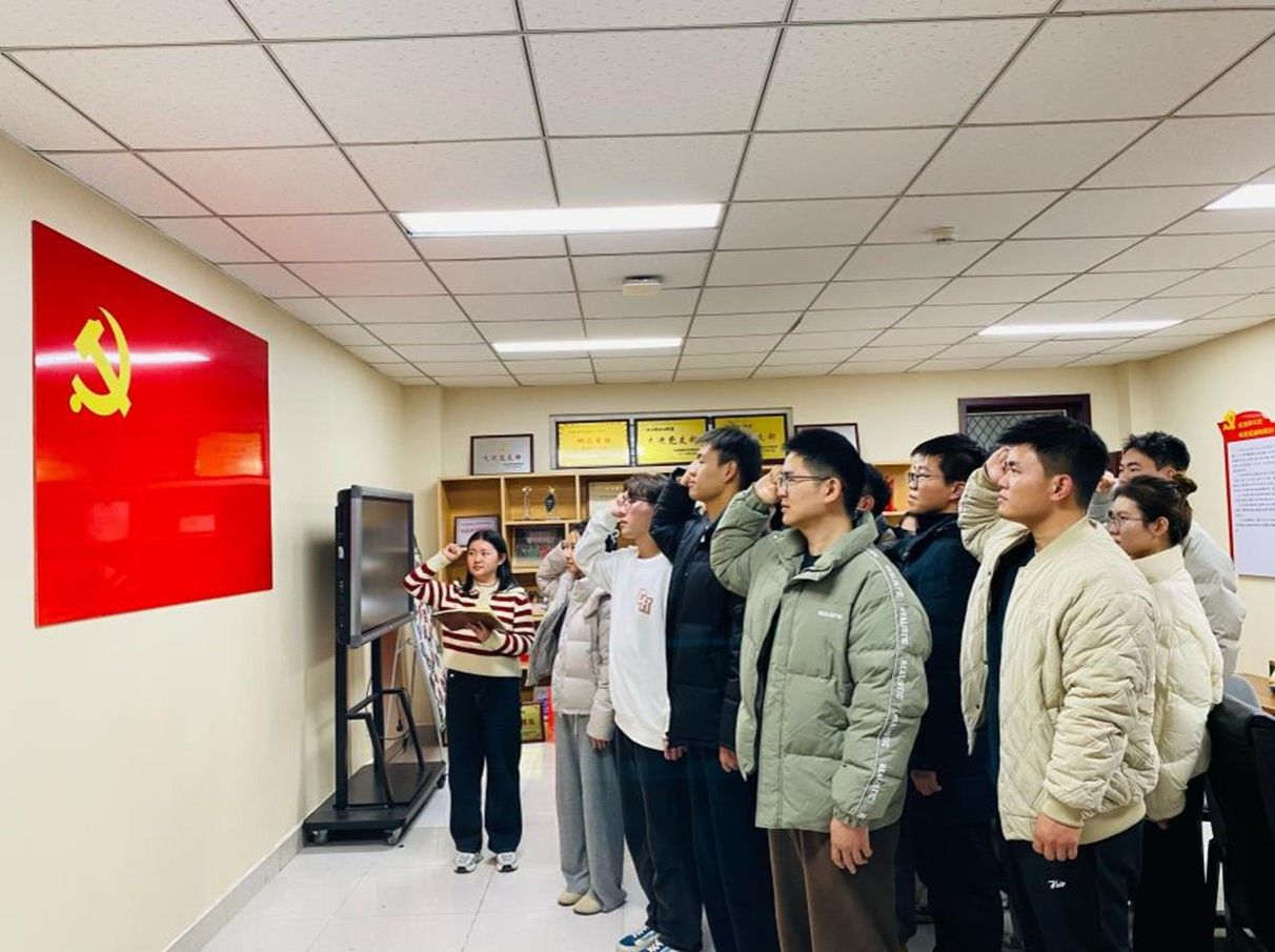 第三环节,召开接收预备党员支部大会。经清点,本支部有表决权的正式党员到会人数超过应到会有表决权人数的半数,会议生效。接着,李光辉等4位发展对象依次从入党动机、思想认识、自身学习、工作态度以及品德修养等方面向党组织汇报自身情况。入党介绍人也详细阐述了4位发展对象的主要情况,并对其能否入党发表意见。随后,陆蓉代表支委会向大会报告了4位发展对象的政治审查情况均合格,参会党员对4位同志的入党问题进行了充分讨论,并通过无记名投票的方式进行表决。监票人史浩霖、计票人王乾旭现场统计表决票结果,大会一致同意接收李光辉、朱航成、柳金辉、蒋凯伦4名同志为中共预备党员。最后,全体预备党员庄严宣誓、支部正式党员重温入党誓词。