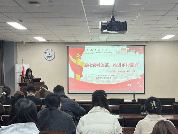 为深入贯彻落实2025年中央一号文件精神,加强支部党员的党性修养,深刻体悟党中央开展“三农”工作、推进乡村振兴的重要精神,2月27日,我院研究生第一党支部于地学楼二楼学术报告厅召开“深化农村改革,推进乡村振兴”主题党日活动,本次党日活动由支部书记卞荷雨主持,支部全体党员和部分积极分子参加。