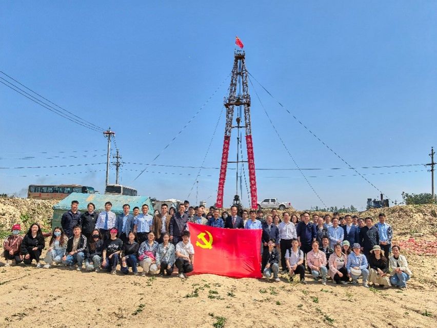 为深入学习贯彻习近平新时代中国特色社会主义思想,践行“党建+科研”融合发展理念,4月28日,yl23411永利集团官网地理科学与工程学部行政教工党支部、地理科学系党支部和研究生第二党支部同赴封丘县丁庄村钻探现场,开展“党建引领科研攻坚,探秘地质服务国家”联合主题党日活动,实地见证开封凹陷千米深钻项目开钻仪式,以实际行动推动学习贯彻习近平总书记关于科技创新和黄河流域生态保护的重要指示精神走深走实。活动由学院党委书记乔家君主持。