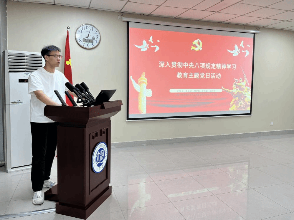 会议第一阶段,由柳金辉、李光辉、蒋凯伦、朱航成四位党员组成的学习小组开展“深入贯彻中央八项规定精神学习教育”主题党课的学习。学习小组以幻灯片和学习视频为依托,向与会党员详细讲解了中央八项规定精神的内涵与意义,并阐述了如何贯彻落实该精神以及所取得的成效与面临的挑战,同时倡导全体党员要以优良党风引领社会民风,争做为人民群众服务的优秀好党员。与会党员认真聆听、积极思考,纷纷表示将严守纪律红线,从自身做起,以优良作风为学部发展和社会建设贡献力量。