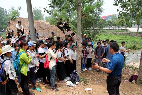 7月1日上午,正在河南登封参加野外地质实习的2015级学生在玉皇庙村附近利用午休间隙开展了纪念教育主题活动,随行带队实习的学院党委副书记刘会军为全体入党积极分子讲述了中国共产党波澜壮阔的发展历程,从共产党人的成长轨迹、思想高度、人生感悟等方面入手,向同学们全面展现了从1921年到2016年整整95年的时间里,从血雨腥风、战火纷飞的革命时期到意气风发、激情燃烧的建设时期再到波澜壮阔、生机勃勃的改革时期,中国共产党人对信仰矢志不渝的追求和中华民族苦难辉煌的艰辛历程。他提出共产党人是“民族的脊梁”、我们要有“信仰的力量”,并强调只有从从思想上向党靠齐,在行为上与党一致,能够讲政治、有信念,讲规矩、有纪律,讲道德、有品行,讲奉献、有作为,才能早日入党,成为中国共产党这神圣而光荣的一份子。