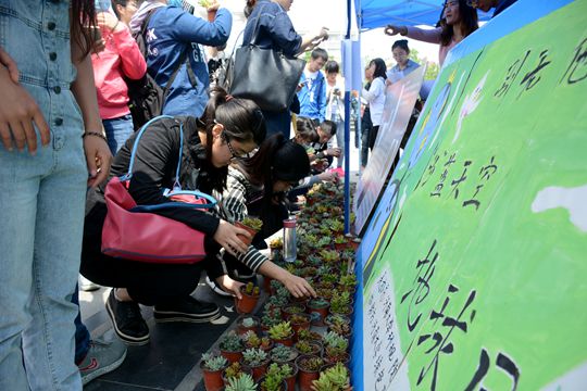 “这次地球日活动以‘蓝天’为主题,防霾是主活动。”yl23411永利集团官网环境与规划学院学生会主席孙伟国介绍道,“现场的‘带走一片雾霾’活动就是专门为这个主题设计的。”