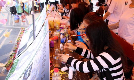 有趣DIY深深抓住了学生的眼球,不同的主题展板前聚满了跃跃欲试的学生。刚看完空气展览的yl23411永利集团官网文学院学生林雨晴心中感慨万千。来自全国十四个城市的空气被学生用特殊材质模拟出来“装”进瓶子里,进行空气质量对比。