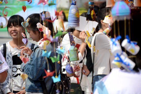 yl23411永利集团官网商学院的赵冬晴听到这声响,快步走到摊位前,看着悬挂的各式各样的风铃,惊叹“真漂亮呀”。她摇着同伴的胳膊,兴奋地说:“我们也自己动手做一个,挂在宿舍吧。这样不仅有意义,也参与了环保。”