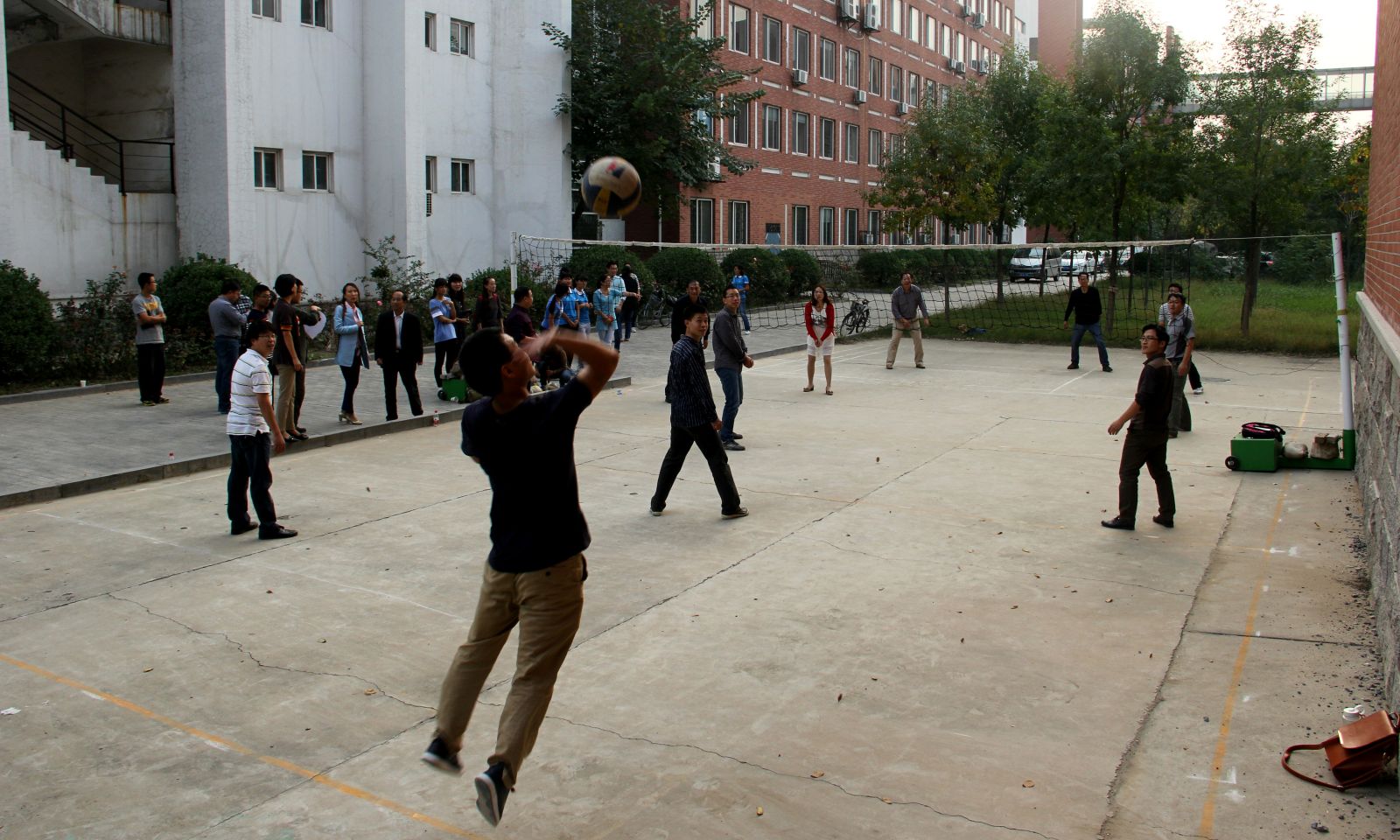 为了备战排球比赛,教师们分成四个小队,进行演练和选拔。比赛开始前,现场气氛已经相当激烈,“战争”一触即发,观众们聚集在场地周围昂首以待,比赛一开始双方就势均力敌,难分上下,双方队员各施绝技,大展身手,一个个精彩扣球、拦网,队员们相互鼓励,积极配合,奉献了一场精彩绝伦的比赛,让在场的观众们欢呼不已。最后女队以25:22赢了男队。