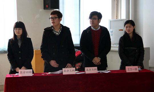 横辩中外万里经纬,纵论古今千年春秋。3月8日下午,我院团委学生会学术部主办的环境与规划学院2015年度辩论赛表演赛在520教室顺利举行。学院2013级的双方辩手你来我往,唇枪舌战,围绕着辩题“科技促进还是阻碍人的全面发展”展开了激烈的辩论。学院团委副书记宋永鹏以及大四学生担任此次比赛评委。