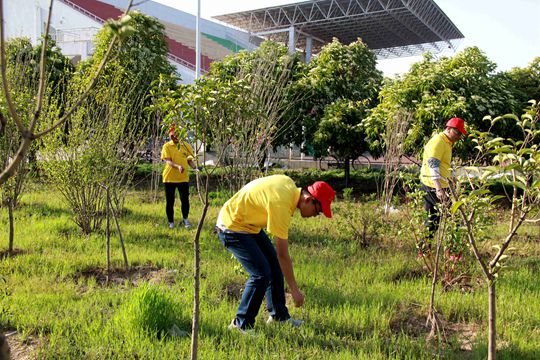 在运动会举办的三天中,我院团委合理安排自愿报名的同学们,对于场地内观众席及各个走道的垃圾进行及时的清理,对于各个观众席的随手垃圾进行回收,并统一进行分工处理。各位同学佩戴小红帽,身着统一服装,认真进行着赛后打扫工作。可爱的小红帽在操场上划出一道道靓丽的风景,他们不放过任何一处场地,不仅仔细清理着操场内的草坪,还有入口处的花坛,为我们的校园奉献无微不至的关怀。