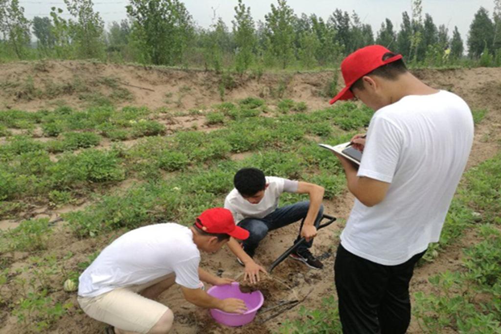 9日清晨,由学院团委书记宋永鹏老师带领的小组深入开封周边乡村,他们根据电子地图对所调查的区域进行分层分幅,将各区域布设均匀的点位详细标注准确的地理位置,并对逐个点位进行采样。他们采集了土壤的样本,而且还带回了当地所种植的小麦、玉米等农作物,以备实验室分析其理化性质和污染状况。