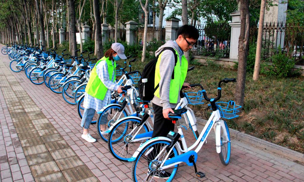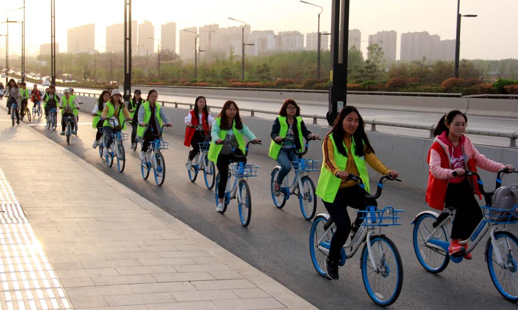 同学们身着统一服装,共享单车的骑行长龙迅速引来不少路人驻足观看,骑行中整齐有序的队伍和同学们青春活力的身影,也为开封增添了一道靓丽的色彩。