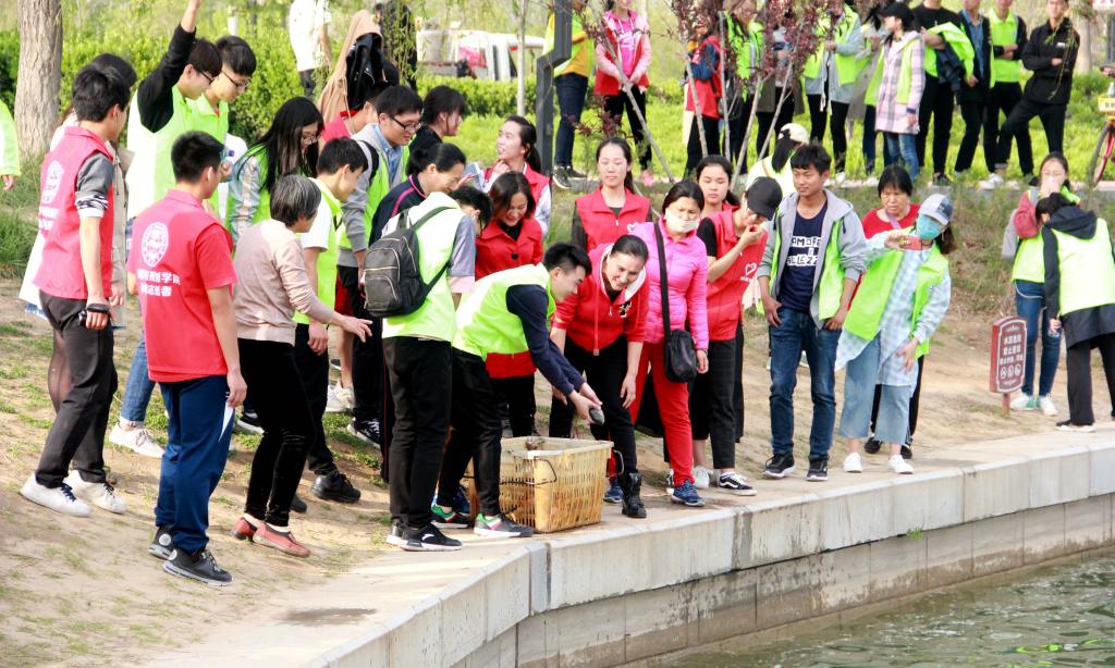 沿途中他们耐心地向游人宣传环保知识、捡拾路边的垃圾,帮助工作人员将共享单车摆放整齐,展现出我院学子的良好形象。抵达汴西湖景区后,湖面上波光粼粼,春风拂面,志愿者们配合汴西湖景区工作人员将培育的鱼苗放生并拍照留念。参与骑行的队员王黎欢说:“今天通过骑行的方式,不仅锻炼了身体,也让我感受到环保的重要性,放生鱼苗,改善生态环境,我觉得很有意义。”