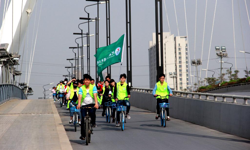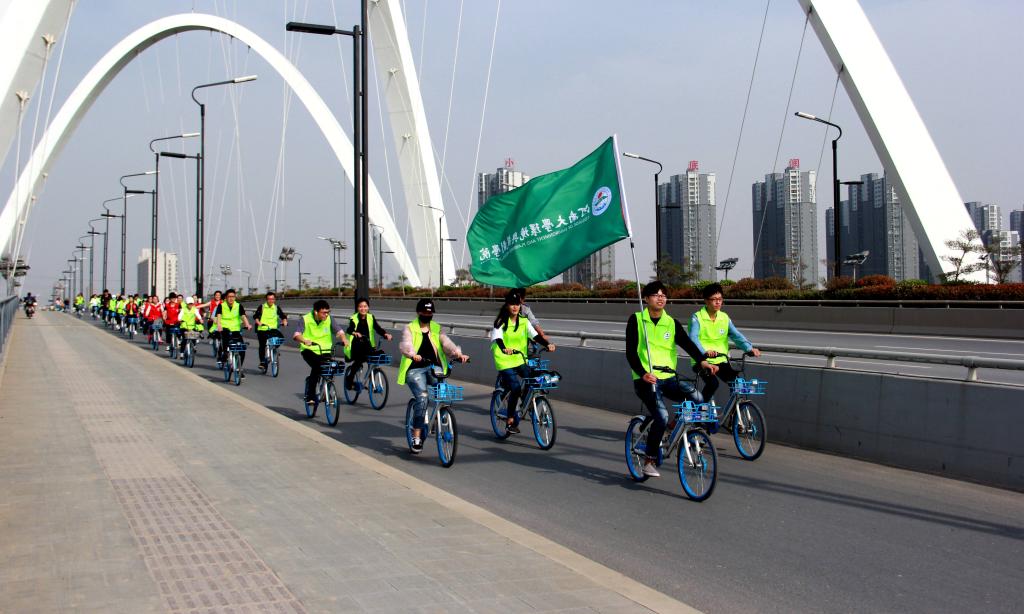 为提倡绿色健康的出行方式,传递节能减排的环保理念,4月15日下午,我院开展以“踏实环保科普‘球’生路”为主题的环保骑行活动。参与本次骑行活动的2016级、2017级学生共七十余人,从yl23411永利集团官网金明校区出发前往开封汴西湖景区,行程近10公里。