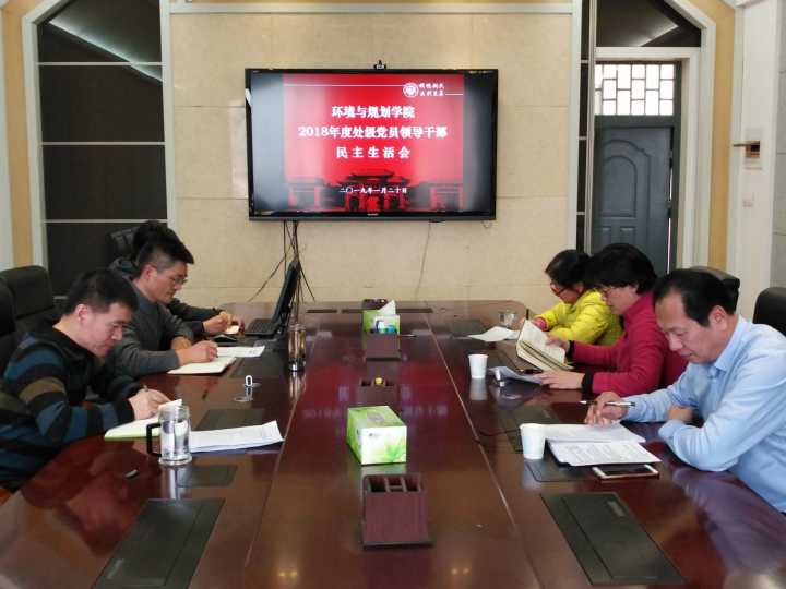 按照校党委《关于召开2018年度处级党员领导干部民主生活会的通知 》要求,1月20日下午,环境与规划学院在学院四楼研讨厅召开了2018年度处级党员领导干部民主生活会,会议由学院党委书记闫峻主持。