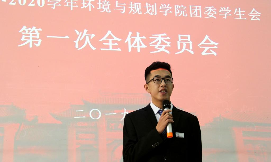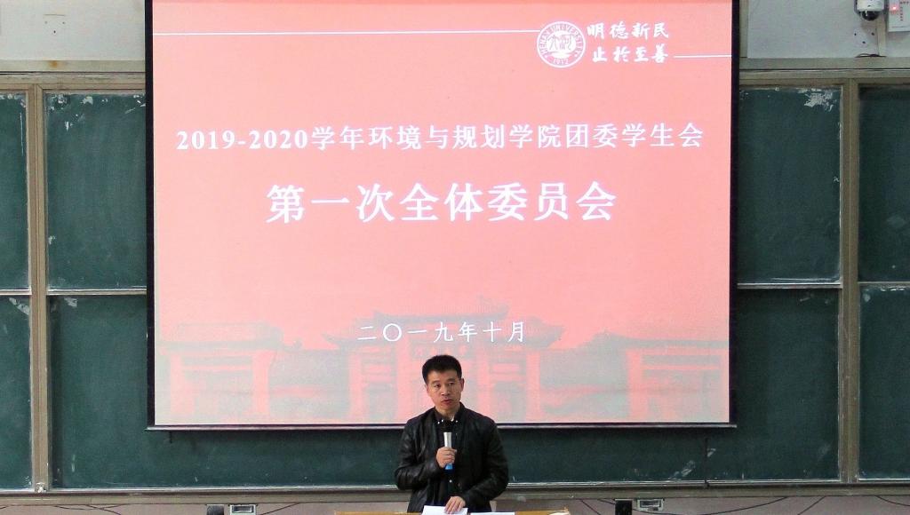 10月20日上午,环境与规划学院2019-2020学年团委学生会第一次全体委员会在金明综合楼1203教室举行,党委副书记徐小军,团委负责人赵越出席会议,2019届学生会主席团及全体成员、2018届学生会主席、青年志愿者协会、院球队代表及挂靠我院的社团负责人参加本次会议。