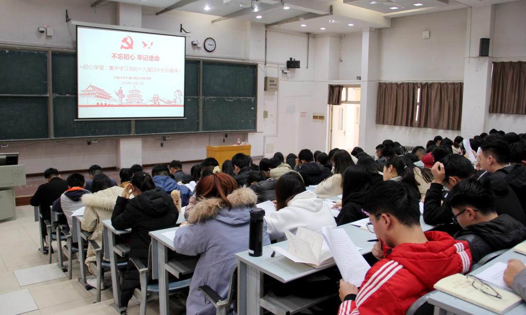 为进一步扎实推进“不忘初心、牢记使命”主题教育,深入学习贯彻党的十九届四中全会精神,11月21日下午,在环境与规划学院党委安排下,学院全体学生党员齐聚“初心学堂”,在综合楼1301室集体学习党的十九届四中全会精神。
