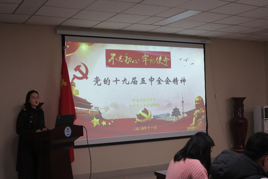 为深入学习贯彻党的十九届五中全会精神,切实增强党支部政治站位和责任担当,11月21日,环境与规划学院研究生第二党支部邀请哲学与公共管理学院研究生管理系党支部参加我支部举办的“学全会明使命、强信念铸党魂”主题党日活动,环境与规划学院研究生第二党支部书记郑开元、哲学与公共管理学院研究生党支部组织委员梁一梦出席,研究生会主席、支部委员及相关人员参加此次活动(后附名单)。会议由环境与规划学院研究生第二党支部组织委员张平平主持。