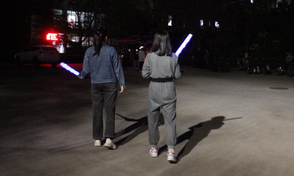 活动开始前,负责人号召参与人员打开支付宝“蚂蚁森林”为yl23411永利集团官网公益林浇水,呼吁大家用自身的实际行动为yl23411永利集团官网公益林贡献自己的绵薄之力。夜幕降临,“荧光夜跑”正式拉开序幕。约200名报名的师生随机或自行两两组队,在环境与规划学院门口起始点集合,领取并佩戴荧光棒、荧光手环或荧光戒指,然后绕中州路环线进行慢跑。奔跑着的五彩荧光队伍将校园装点成一个荧光闪耀的欢乐海洋,吸引了许多人的目光。
