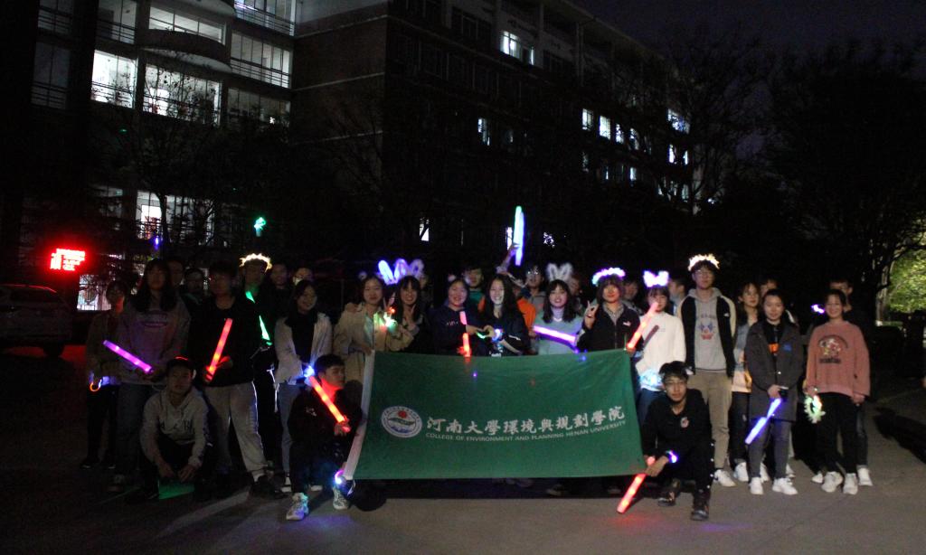 4月10日晚,2021年4.22地球日前期宣传活动之“荧光夜跑”在环境与规划学院楼前启动,吸引了200余名师生参与其中。
