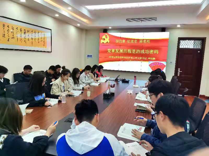 4月23日,我院本科生第二党支部书记韩晓静老师以“党章发展历程中的成功密码”为题,在学院301会议室给全体支部成员上党课。2019级部分入党积极分子参加。
