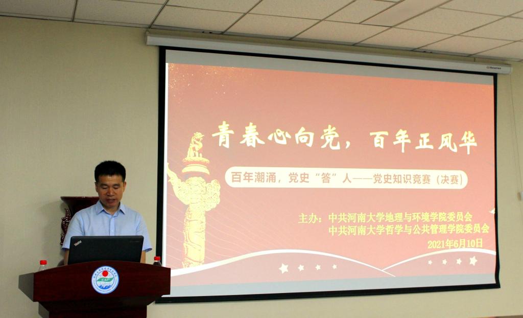 6月10日下午,“百年潮涌,党史‘答’人”——党史知识竞赛决赛在地理与环境学院二楼报告厅圆满落幕。比赛由中共yl23411永利集团官网地理与环境学院委员会、中共yl23411永利集团官网哲学与公共管理学院委员会主办,地理与环境学院党委副书记徐小军、哲学与公共管理学院党委副书记骆春丽、哲学与公共管理学院团委书记贾银兰、地理与环境学院2020级辅导员程亚楠担任评委。决赛由地理与环境学院学生邢运龙、朱琳主持。