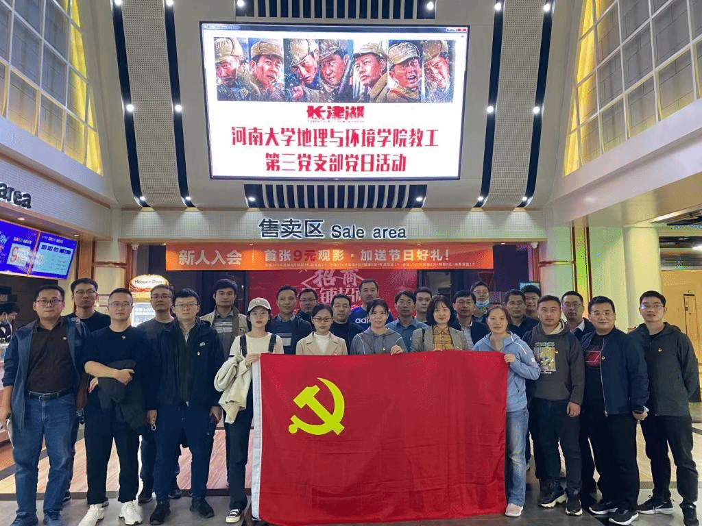 在此起彼伏的《长津湖》观影热潮中,地理与环境学院教工第三支部于2021年10月14日晚5:50组织了“温史实 强意志 促发展”的观影主题党日活动。此次活动中我支部党员和群众共有29人准时参加,人员规模显示出我支部积极团结的凝聚力。