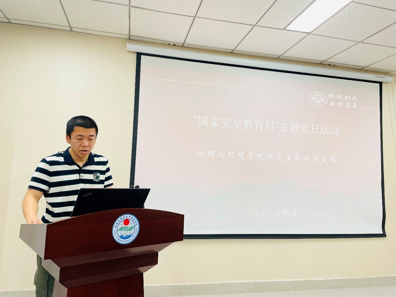 全民国家安全教育日是为了增强全民国家安全意识,维护国家安全而设立的节日。2022年4月15日是第七个全民国家安全教育日,今年教育活动的主题是“树牢总体国家安全观,感悟新时代国家安全成就,为迎接党的二十大胜利召开营造良好氛围”。4月11日中午,研究生第四党支部以此为主题召开党日活动,会议由支部书记朱慧儒主持。