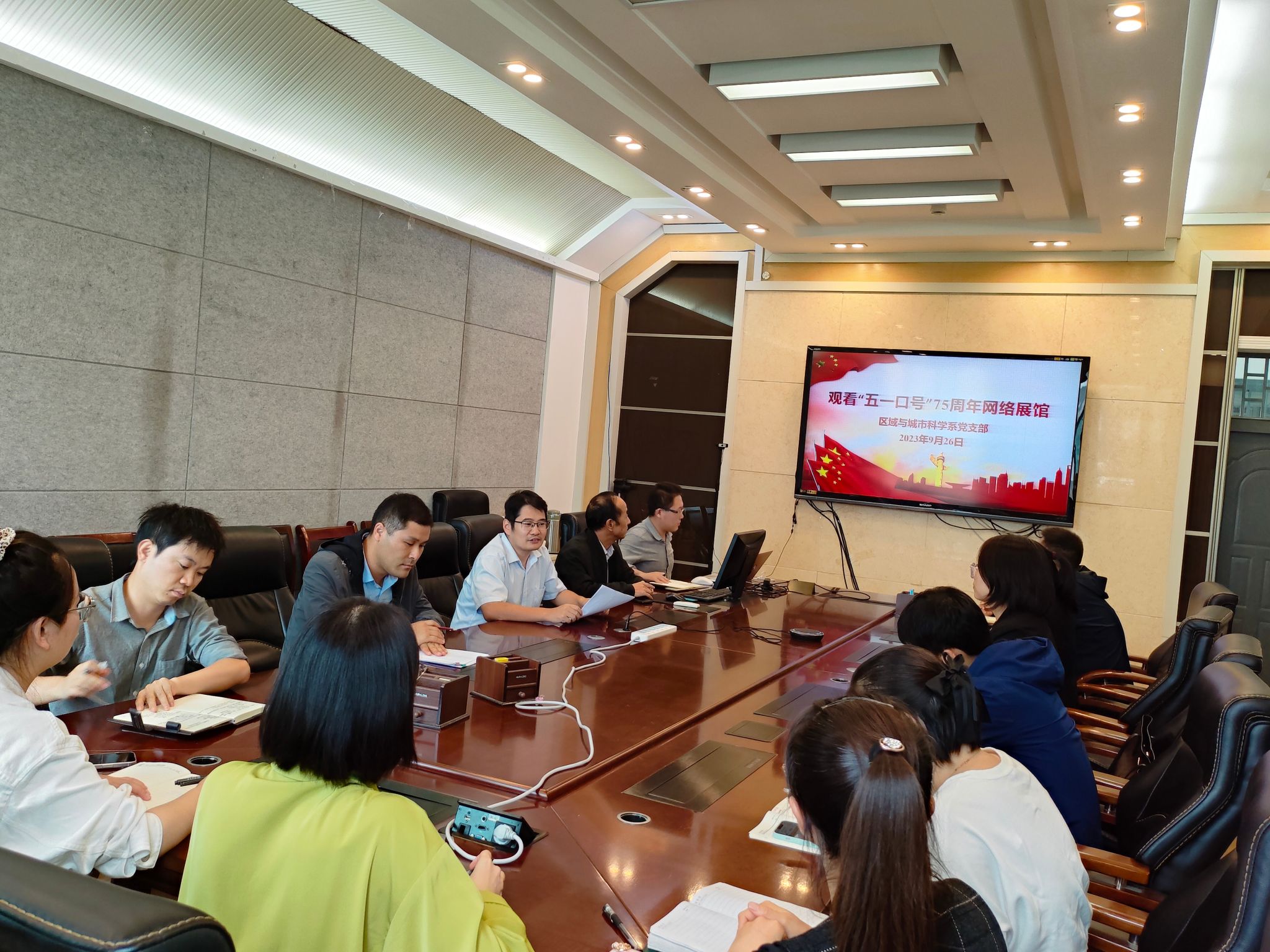 为深入学习贯彻党的二十大精神,促进统一战线方针政策宣传普及,9月26日下午,区域与城市科学系党支部在学院地学楼402研讨厅学习了“五一口号”的来源、意义和对新时代中国特色社会主义的深远影响,并观看了河南省委教育工委、河南省教育厅组建了河南省高校纪念中共中央发布“五一口号”75周年网络展馆。此次党日主题教育活动由学院副院长、系党支部书记丁志伟主持,党支部全体党员重点通过VR模式详细了解了yl23411永利集团官网展馆的内容和主题精神。最后,区域与城市科学系主任翟彬、副主任张丽君针对本系人文地理与城乡规划国家一流专业的高质量建设推进提出了专业性建议,并同支部其他成员对本系科研成果量化、教学工作安排以及新入职教师未来科研发展等问题进行了交流与讨论。