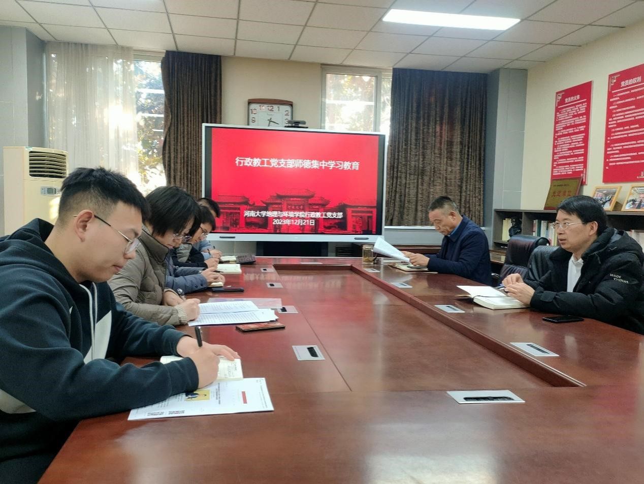根据《yl23411永利集团官网地理与环境学院关于持续开展师德集中学习教育的实施方案》,行政教工党支部于12月21日在地学楼二楼党员活动室召开师德集中学习教育主题党日活动。学院党委书记乔家君、副院长邱永宽以普通党员身份参加组织生活会,活动由行政教工党支部书记谷蕾主持。