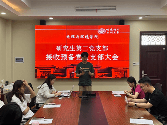 随后,研究生第二党支部召开接收预备党员支部大会。由陆蓉同志向全体党员及发展对象介绍了本次会议的基本流程,宣布本支部有表决权的正式党员共29人,应到会29人,实到会24人,有表决权的正式党员到会人数超过应到会有表决权人数的半数,会议生效。