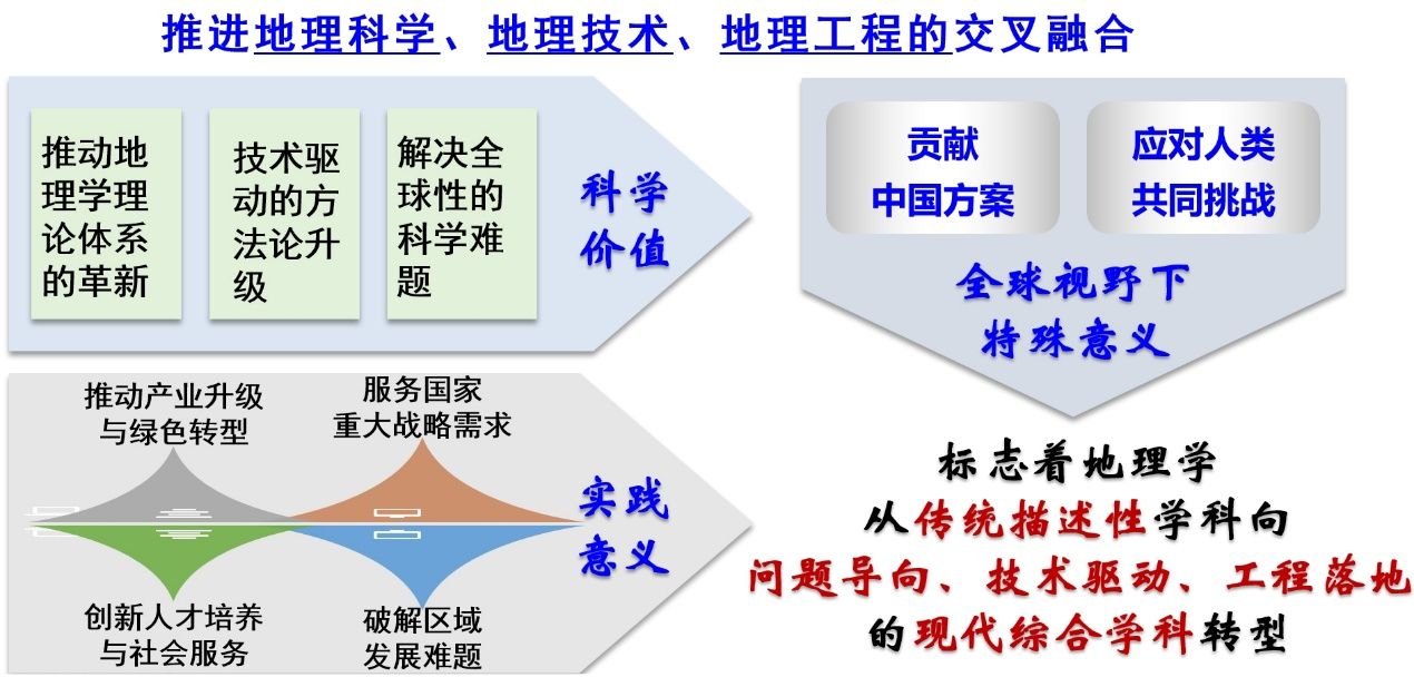 交叉性:坚持“四个面向”的战略导向,促进地理科学、技术、工程与实践深度融汇,实现了自然科学与工程科学、社会科学的交叉融合。