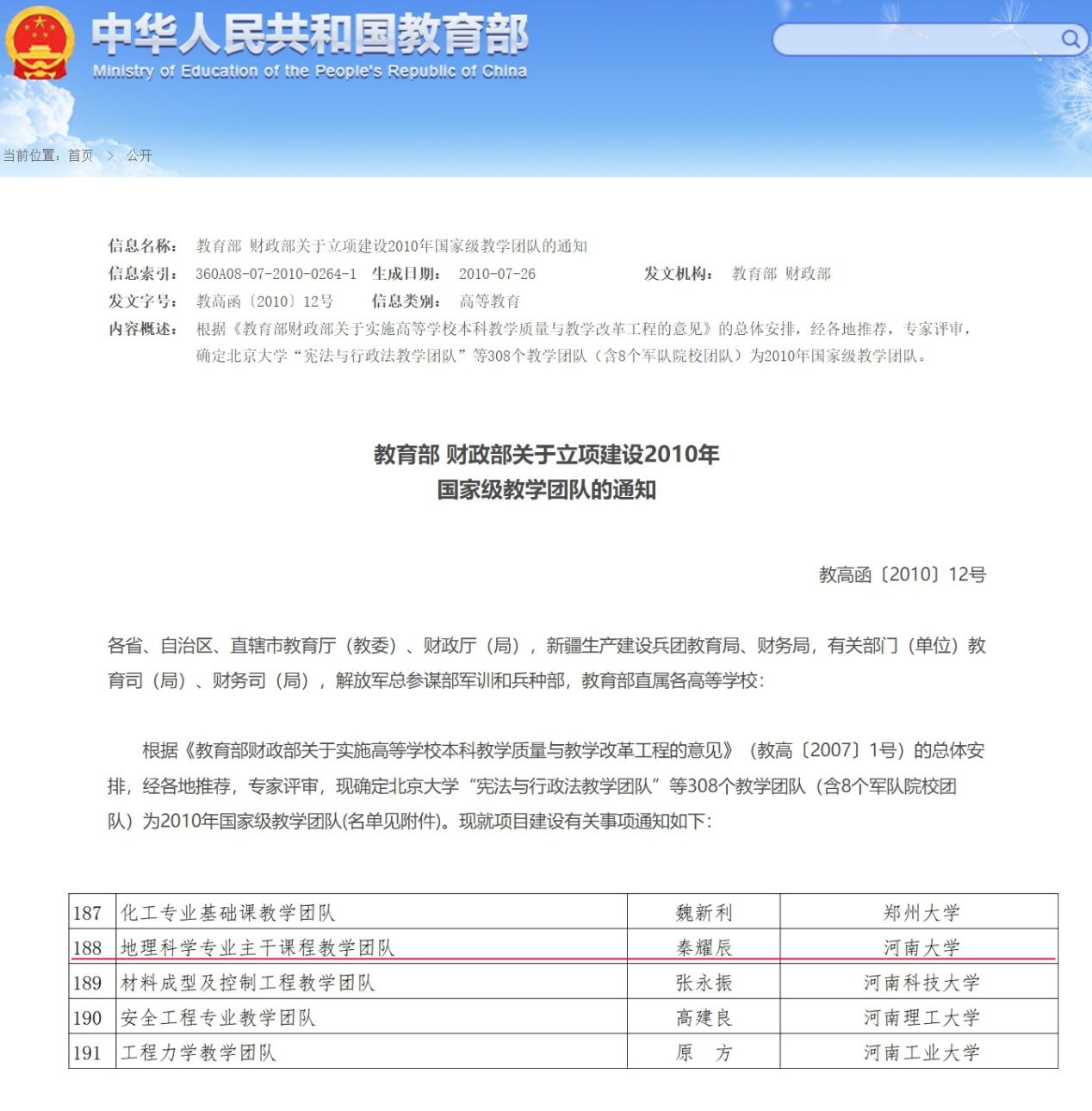国家级人才、地理科学主干课程国家级团队、全国高校黄大年式教师团队。
