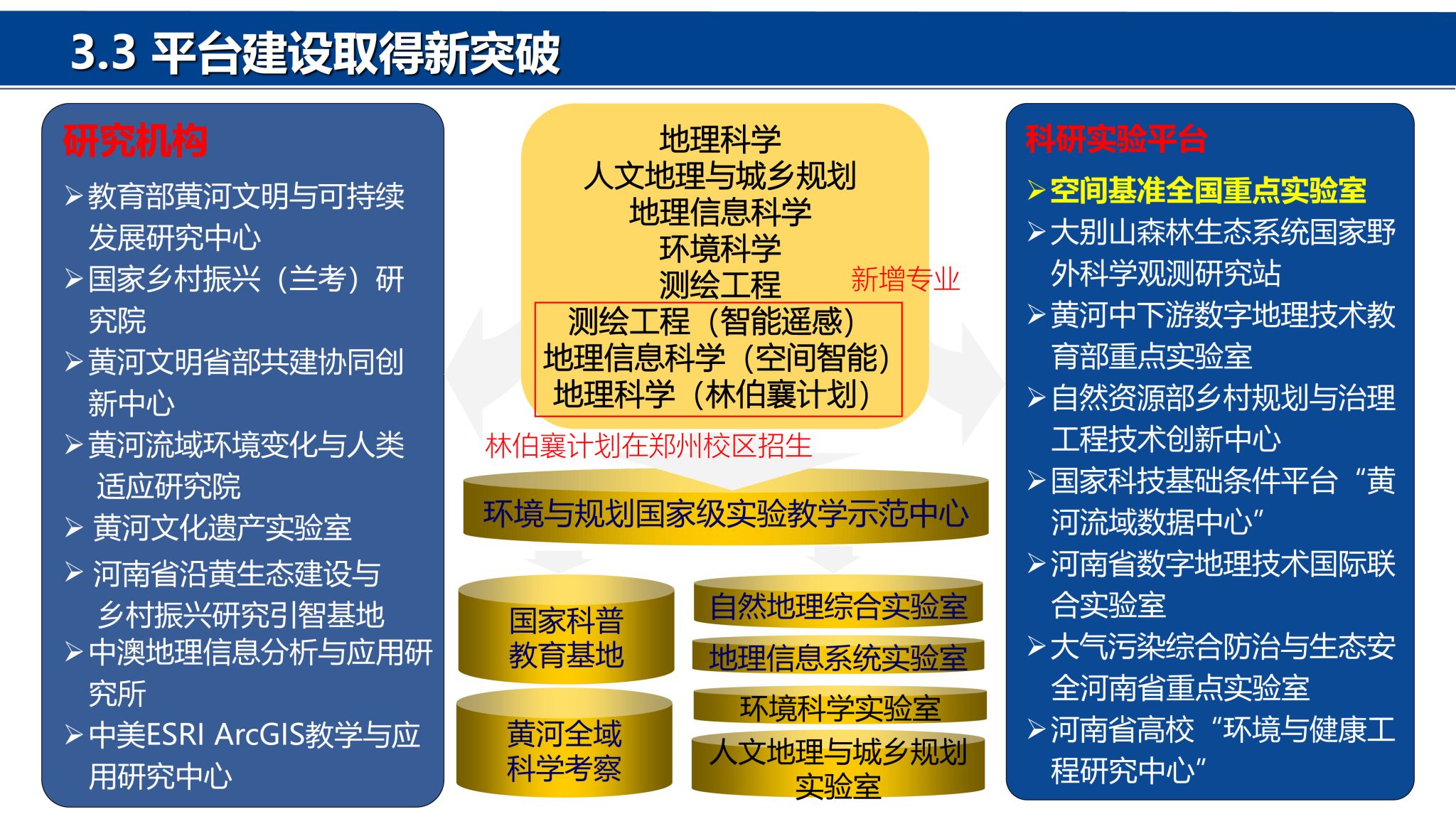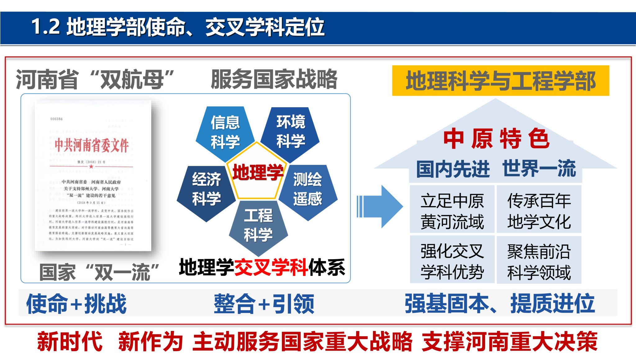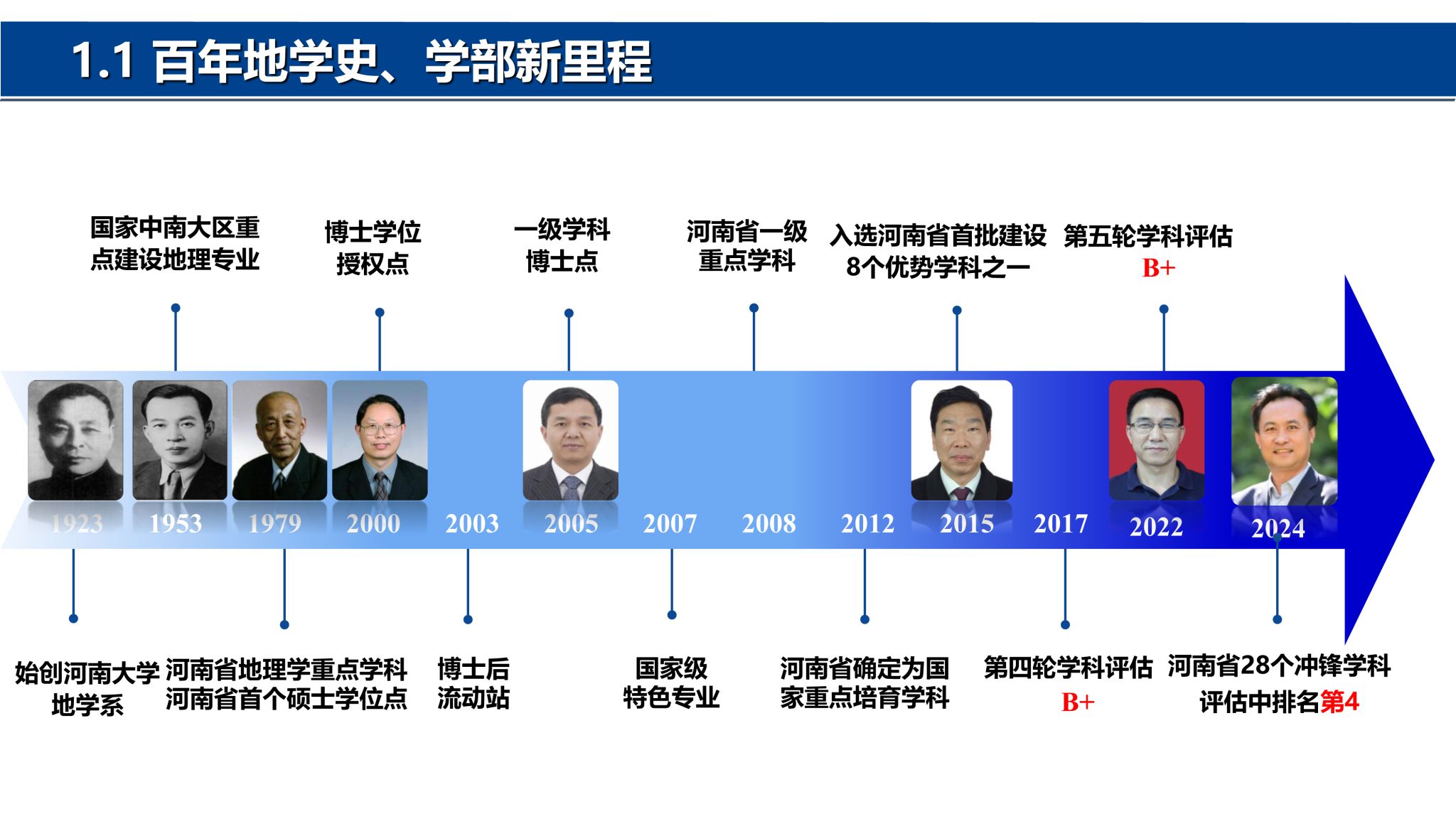 学部前身始于1923年中州大学(yl23411永利集团官网前身)的地学系,首任系主任为著名地学家、中国科学院学部委员(中国科学院院士)冯景兰教授。经过几代地理人的筚路蓝缕、奋力拼搏,地理科学与工程学部在教学科研、学科建设、人才培养、社会服务等方面取得了突出的成绩,得到社会各界一致赞誉。地理学科在国家第四、第五轮学科评估中为B+位次,2024年在河南省28个冲锋学科评估中排名第4。