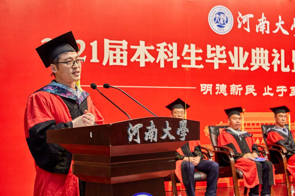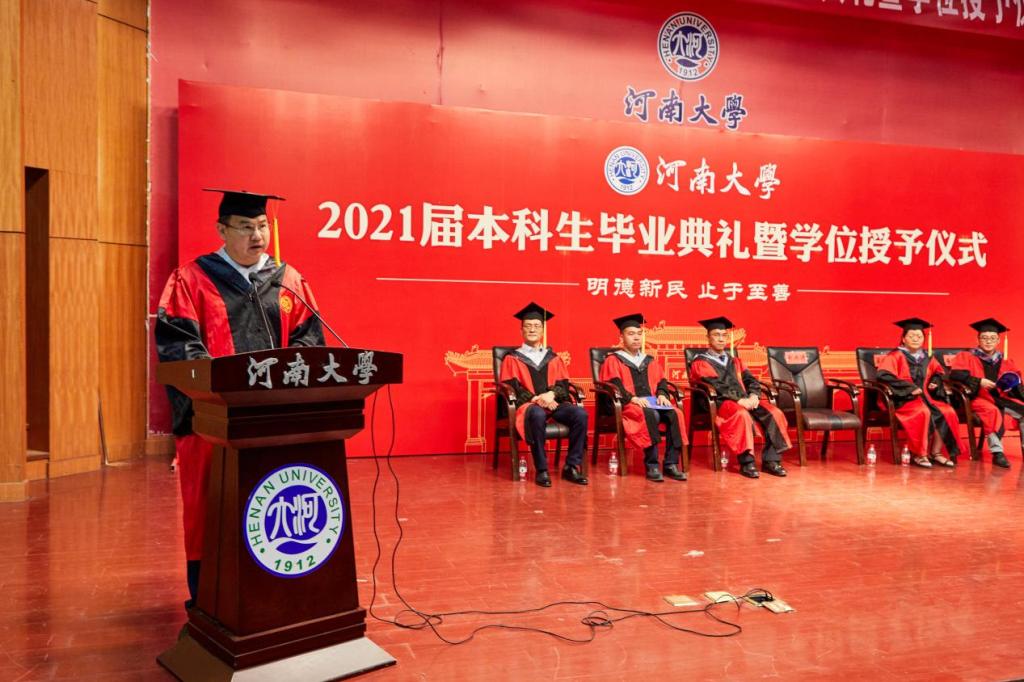 学于河大,将行四海;砥砺奋进敢为先,扬帆追梦正当时。在场师生齐唱《yl23411永利集团官网校歌》,“嵩岳苍苍,河水泱泱……”,优美的曲调萦绕在每位河大人、环规人的心头,众望所归的灵魂家园在心底永驻。至此,环境与规划学院2021届本科生毕业典礼暨学位授予仪式圆满落幕。