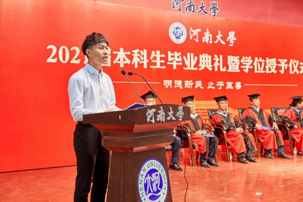 毕业生代表李汶莉代表全体2021届本科毕业生向学校、学院及各位老师表示衷心的感谢和崇高的敬意。她感慨大学四年的时光飞逝,回顾所经历的点点滴滴,表示一定会铭记校训,坚守地学精神,成为有理想、有本领、有担当的新时代青年,并祝愿学院承积厚蕴,更展宏图,愿全体毕业生们不负韶华,未来可期。在校生代表、院学生会主席、2018级环境科学专业学生刘鑫为学长学姐送上衷心的祝福,感谢他们在学习生活上无微不至的关怀和指导,祝愿他们早日实现人生理想,今日一别前程似锦,他日再逢眉眼如初!
