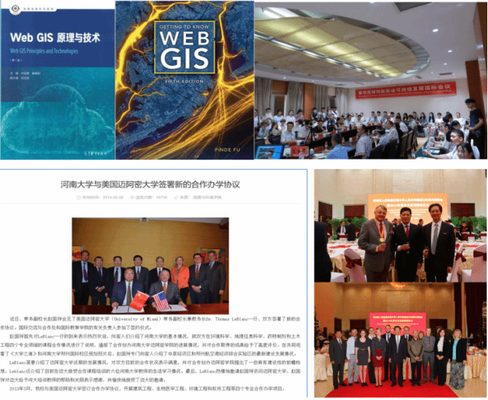 学院先后与美国科学院、美国环境系统研究所(ESRI)、德克萨斯州立大学(UTD)、迈阿密大学(UM)等20多家学术机构和高等院校,开展联合培养与合作研究,建立了河南省数字地理技术国际联合实验室、河南省沿黄生态保护与乡村振兴引智平台,受聘的海外教授Ronald Briggs、Milan Konecny先后获得河南省人民政府“黄河友谊奖”。
