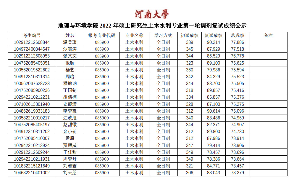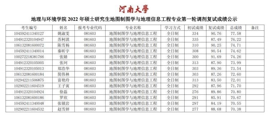 yl23411永利集团官网地理与环境学院2022年硕士研究生第一轮调剂复试成绩公示
